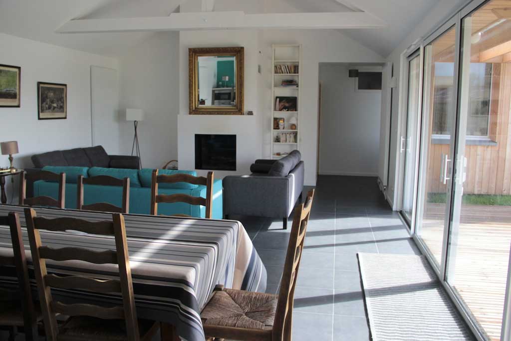 La pièce de vie est constituée d’une cuisine ouverte aménagée et équipée, un séjour avec un accès à sa terrasse attenante exposée sud. La cheminée apporte un confort thermique chaleureux et promet des moments en famille cocooning.