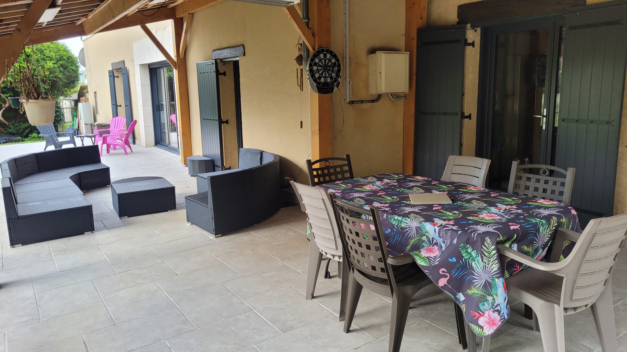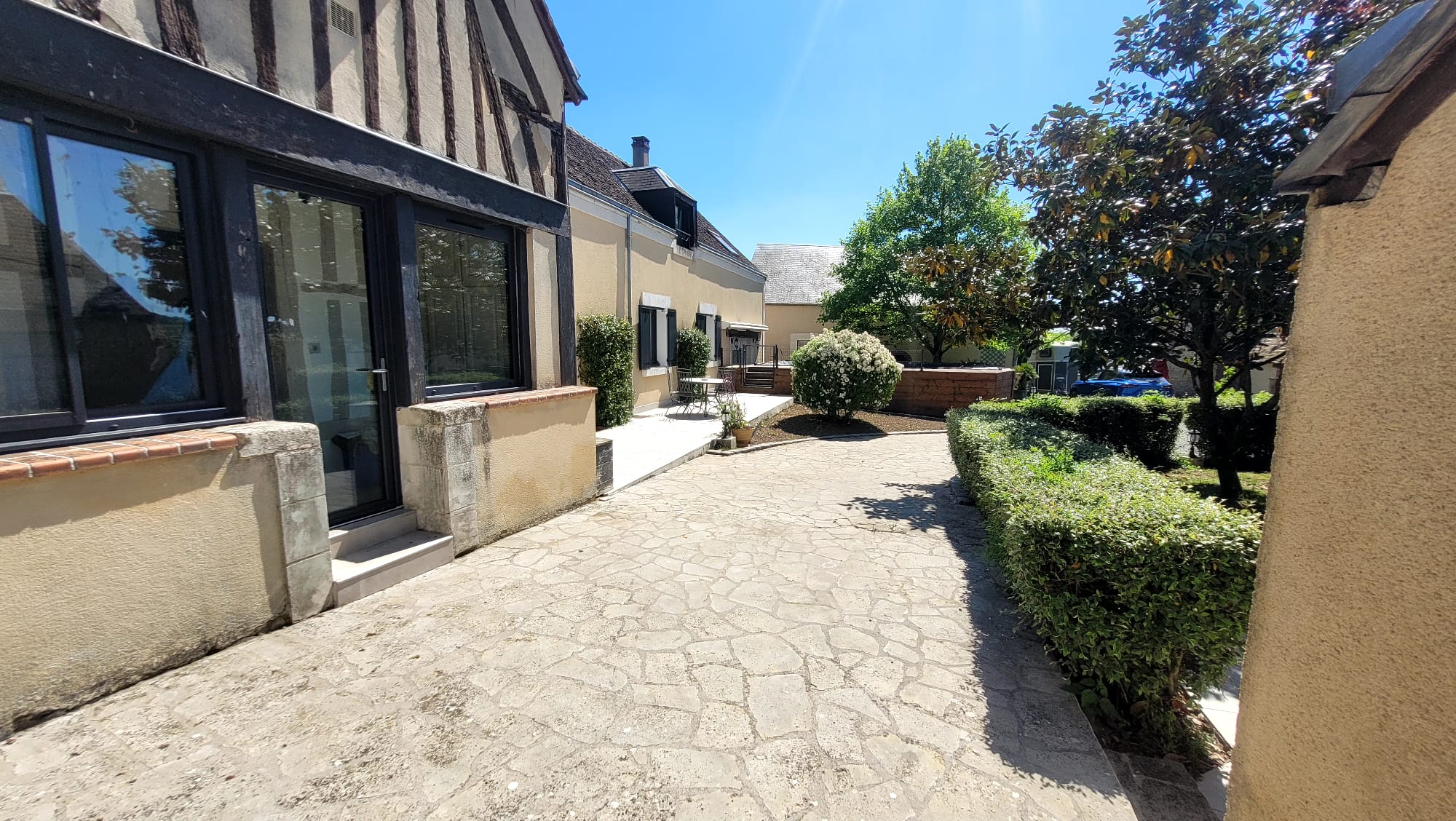 - Ensemble des extérieurs fleuri et terrasse.