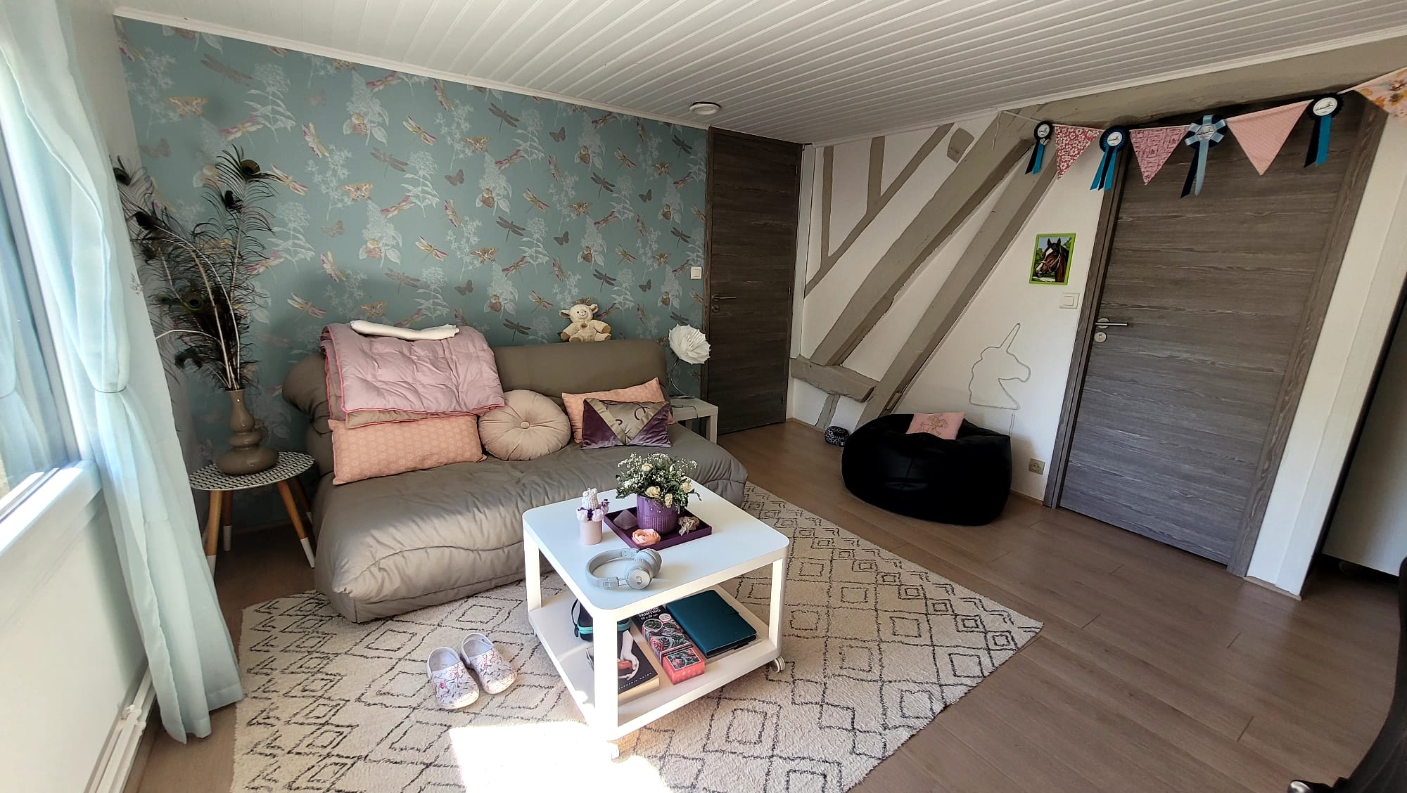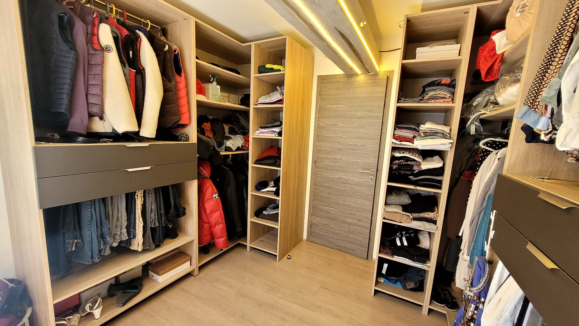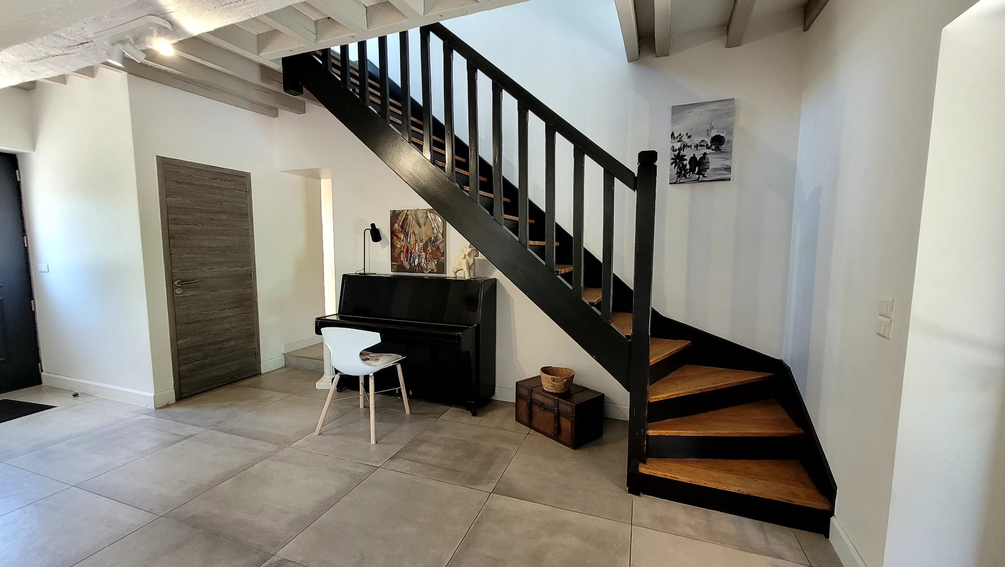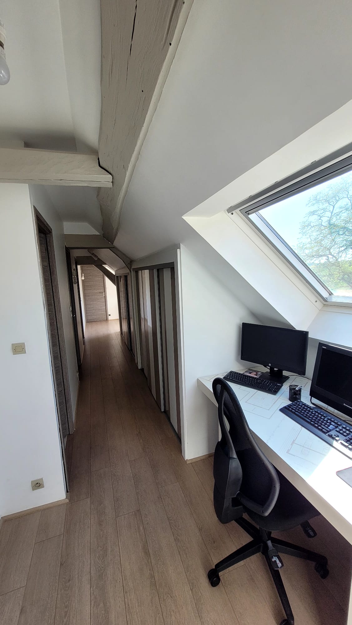 Palier spacieux, laissant place à un bureau et des rangements optimisés.