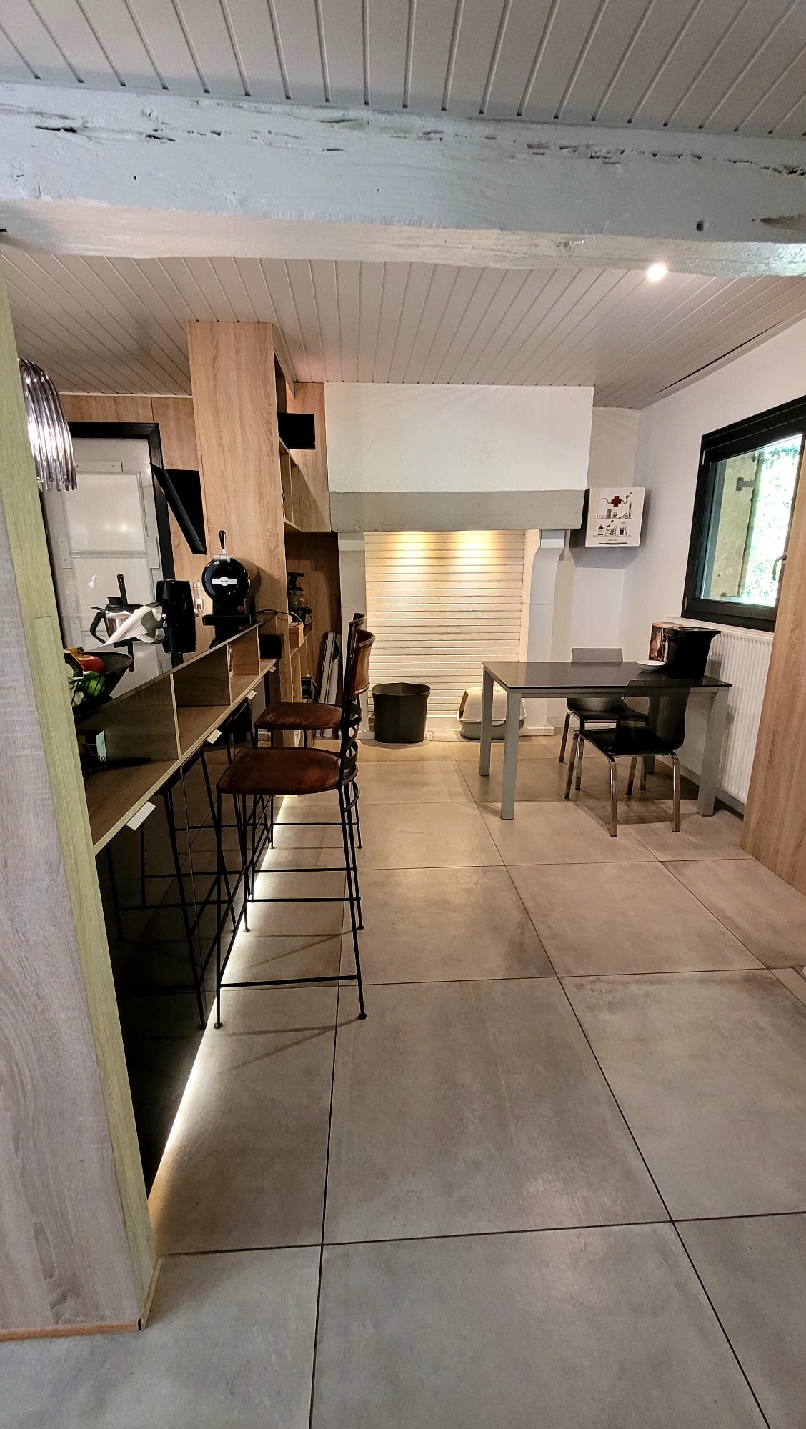 Côté cuisine, la véranda est également une seconde entrée.